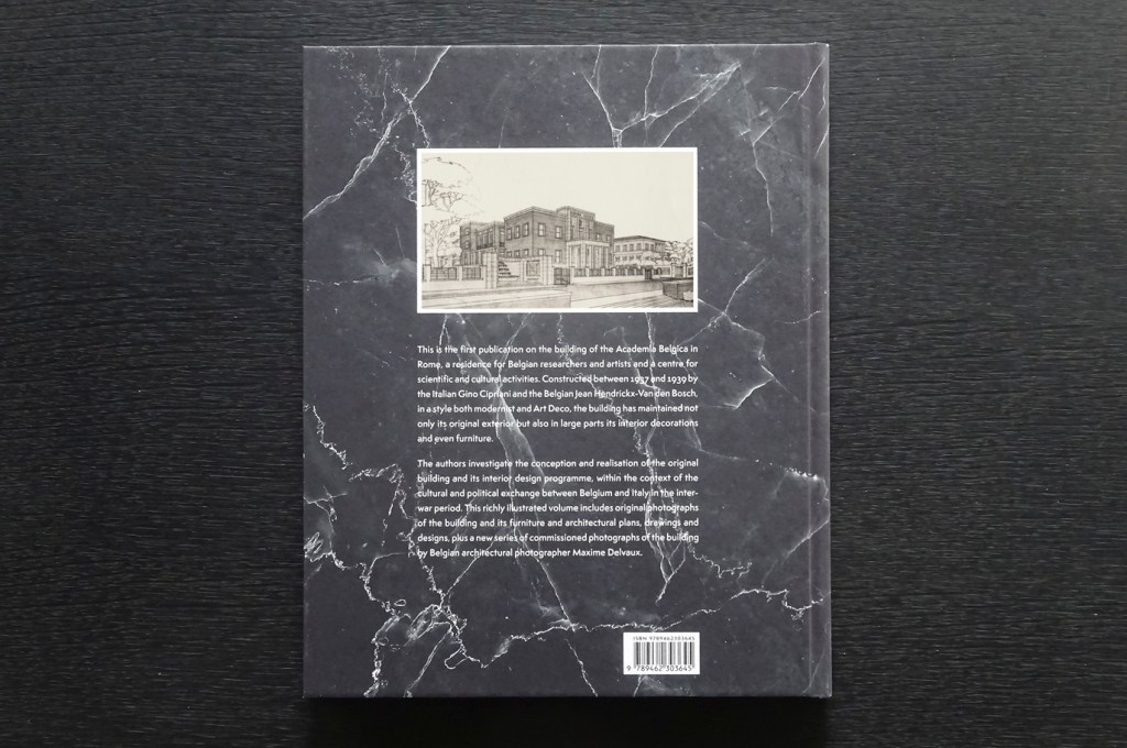 Publication on the building of the Academia Belgica in Rome, a residence for Belgian researchers and artists and a centre for scientific and cultural activities. Constructed between 1937 and 1939 by the architects Gino Cipriani (IT) and Jean Hendrickx-Van den Bosch (BE), in a style both modernist and Art Deco, the building has maintained not only its original exterior but also its interior decorations and furniture.